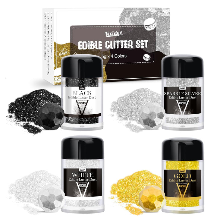 Nuestro brillo comestible de la calidad de los alimentos es vegano y sin alérgenos, no contiene gluten, nueces o productos lácteos y, por lo tanto, es seguro para que todos los usen, independientemente de las restricciones dietéticas o las alergias alimentarias. Kosher, Halal, HACCP y certificado vegano. No contiene azúcar o sabores, asegurándose de que no cambie el sabor o la textura de los alimentos.